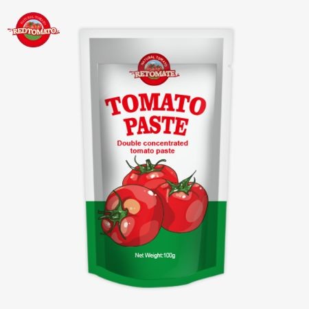 The 100g stand-up sachet remains a favored option for packaging tomato paste, a concentrated condiment extensively utilized in cooking. It imparts a robust tomato flavor with a well-balanced acidity and sweetness.